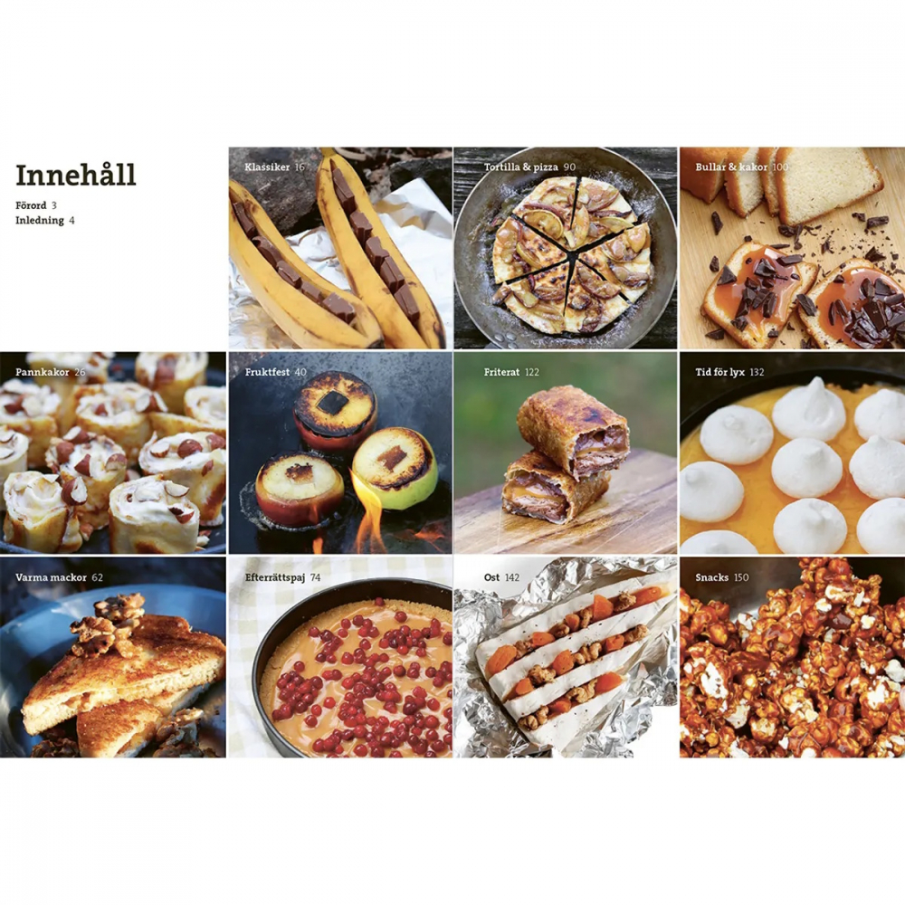Eric Tornblad har skrivit flera uppskattade böcker om friluftsmat och har under många år hållit kurser och event om matlagning utomhus. Och en sak har han lärt sig – de rätter som är populärast är alltid desamma: efterrätterna. Det blev startskottet till den här boken. Här hittar du klassiker som hotam totam, krabbelurer och hajkbanan, men också mer oväntade godsaker som inbakad äppelpaj och tiramisu! Uthusets personliga favorit är nog ändå ananas med lakritssås. Mums!