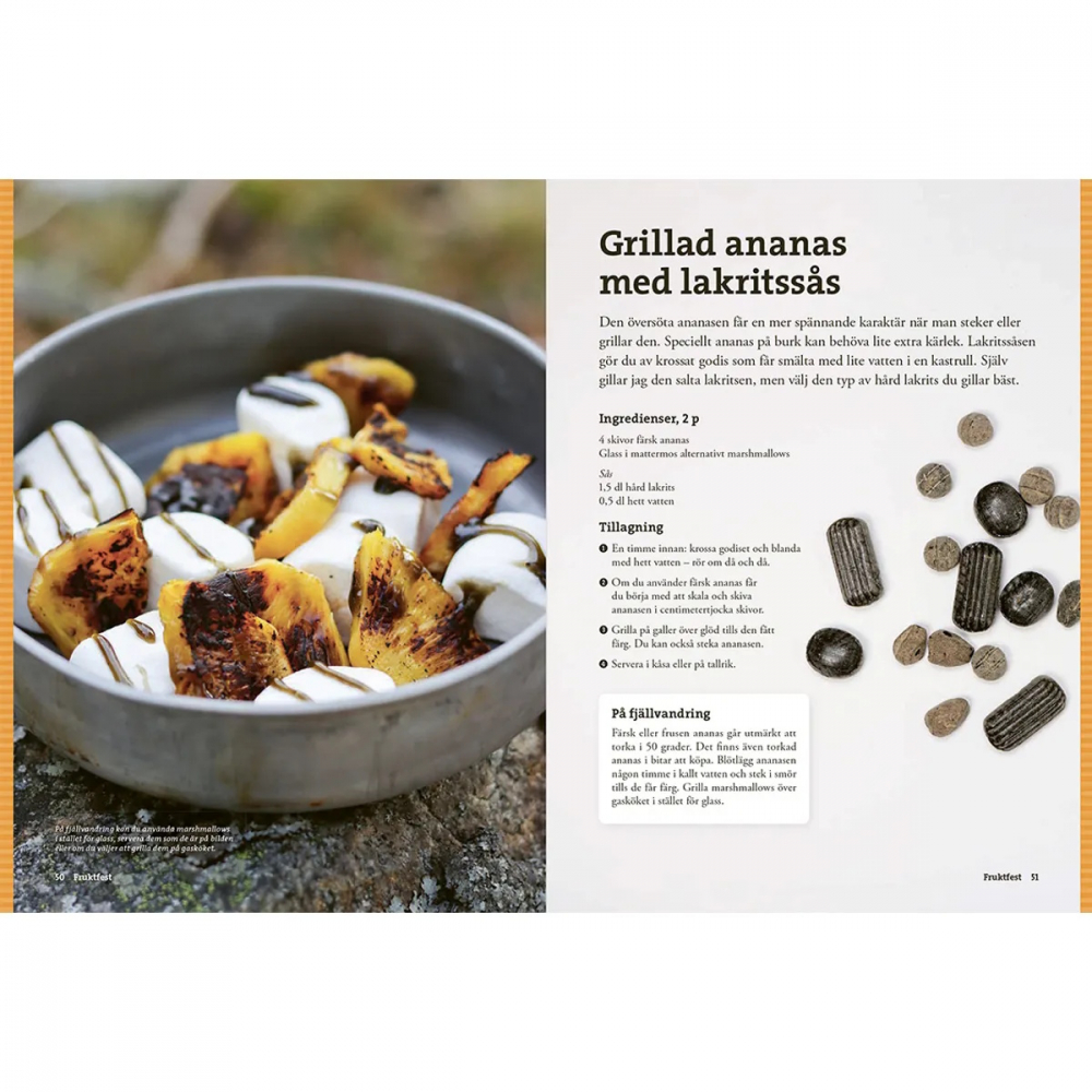 Recepten är enkla och anpassade för friluftsliv. Inte så himlans massa krångel och moment, kort tillagningstid och skapar minimalt med disk – och det tycker en ju alltid om.