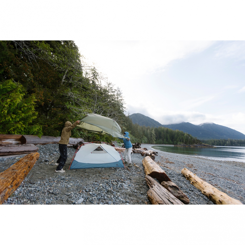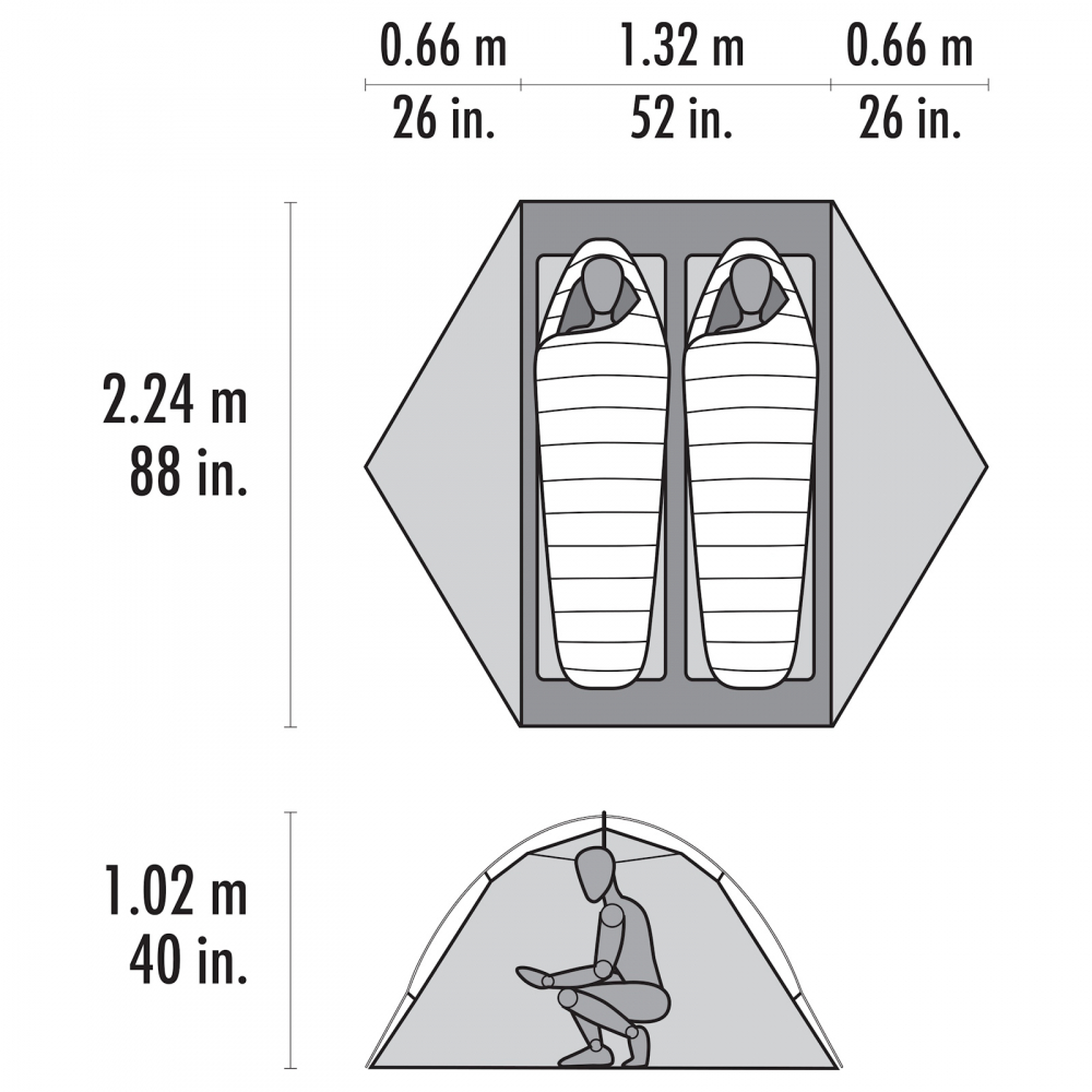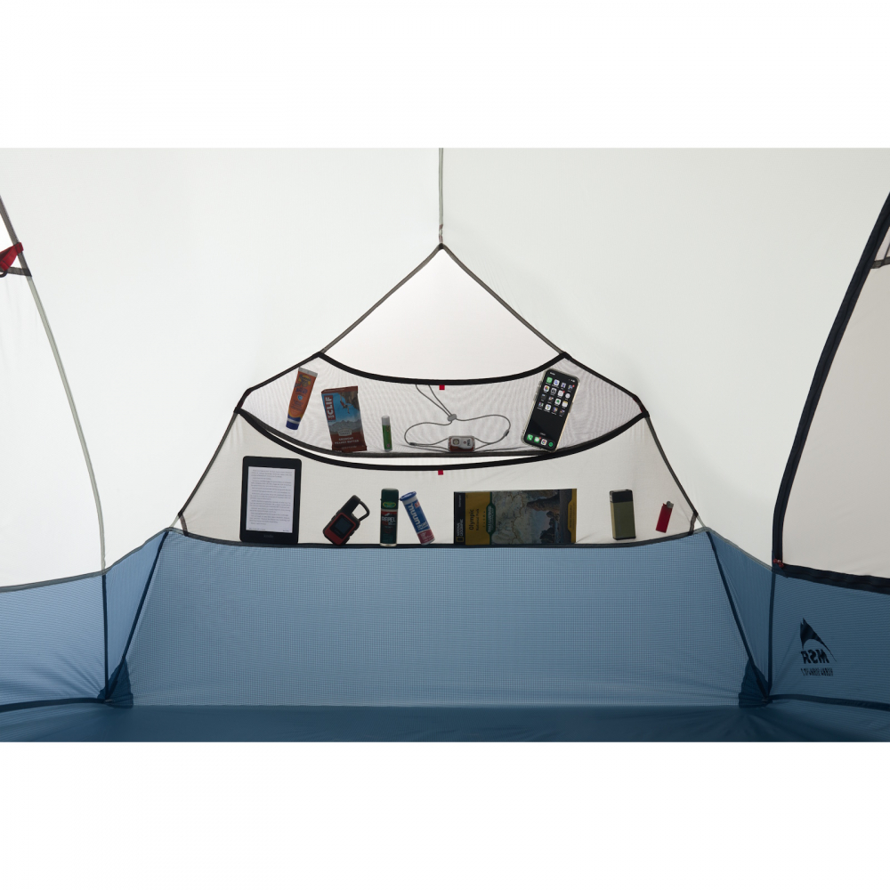 I Hubba Hubba HD 2P, med sin innertältshöjd på 102 cm, kan nästintill vem som helst sitta upprätt utan att behöva köra gamnackestilen. Det är ju rätt najs! Tack vare konstruktionen med nästintill vertikala väggar och rektangulärt innertält så blir det här tältet rejält rymligt för 2 personer. Dessutom finns det ett gäng med invändiga fickor så ni kan hålla ordning inne i tältet. Och dubbla absider gör ju sitt; ni behöver inte kliva över varandra när det blir dags för kissepaus mitt i natten, ni kan båda ha stenkoll på er packning i varsin absid och skulle det bli oväder så går det fint att laga mat i ena absiden och ha bådas packning i den andra.