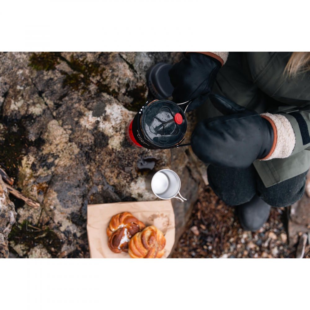 Tack vare att brännaren har en låg profil så blir Lite Plus II stadigt, även om du kör med den minsta gasbehållaren. Det följer dessutom med ett fotstöd i köpet så då blir det stabilt som tjyven. 100-grams gasbehållaren får plats inuti kastrullen när du ska packa ihop ditt kök, vilket även brännaren gör. Kastrull i hårdanodiserad aluminium och locket, i plast, går även att använda som mugg om du skulle vilja det. Lite Plus är inklätt i tunnare G-1000 Eco som inte bara ger köket ett snygg touch utan även fungerar som värmebeständigt omslag.