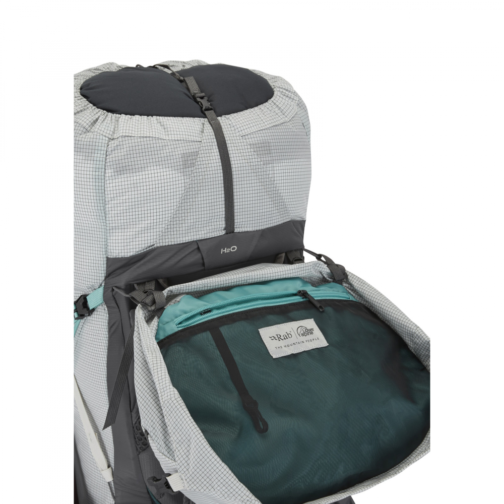 Väven är en tunn men slitstark Spectra® Ripstop. En 100 denier nylonväv, återvunnen till 85%. Bra UV-beständighet och vattenresistens på den men ska du iväg på tur och det vankas regn behöver du komplettera med ett regnskydd. Om du inte väljer att täta inifrån med vattentäta packpåsar dvs.