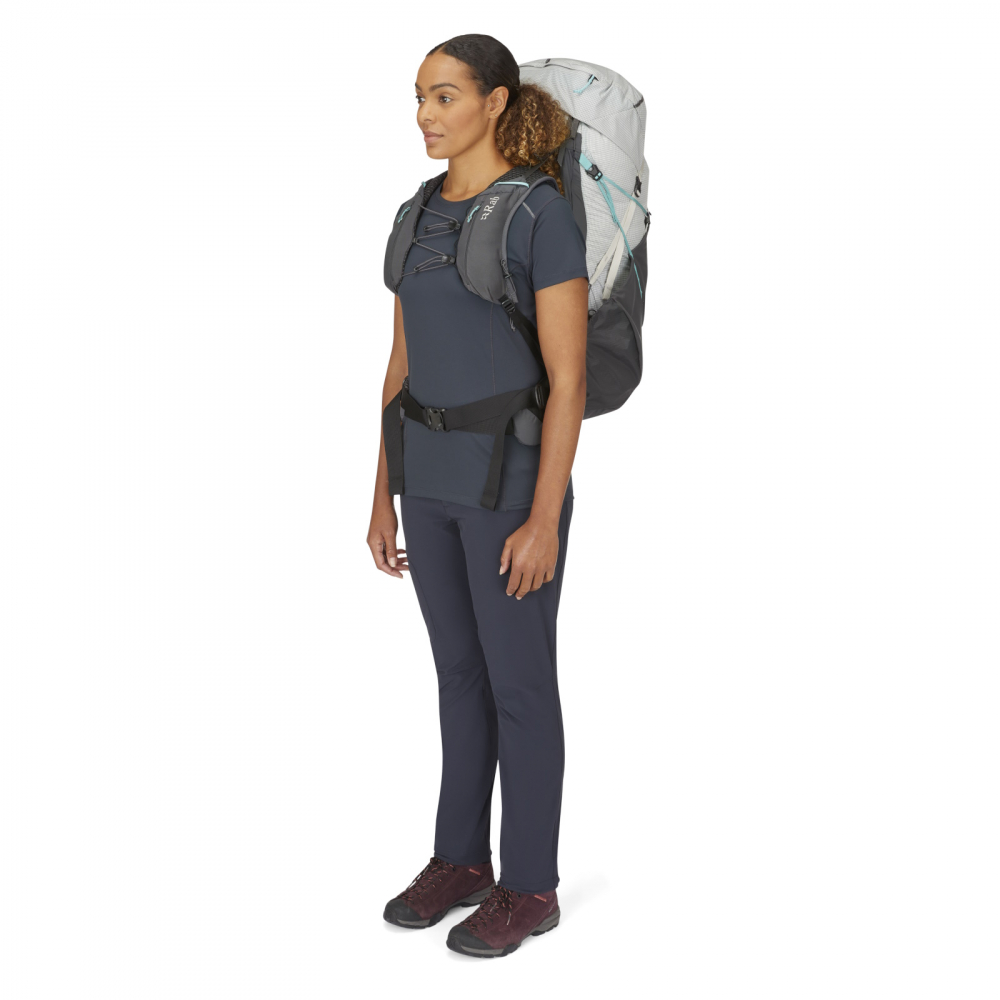 RAB Muon ND 50 väger in på strax under kilot så är en sjyst vandringssäck för dig som vill bära lite lättare till skogs och fjälls. För många en ryggsäck perfekt för 3-4 dagarsturer medan andra, som har jobbat lite mer med att både få ner vikt & volym på sin packning, räcker förmodligen för en veckotur. ND står för Narrow Design vilket i sin tur innebär att det här är en dammodell, dvs smalare över oket och något kortare rygglängd än unisexditon. En ryggsäck anpassad för den kvinnliga kroppen, helt enkelt.