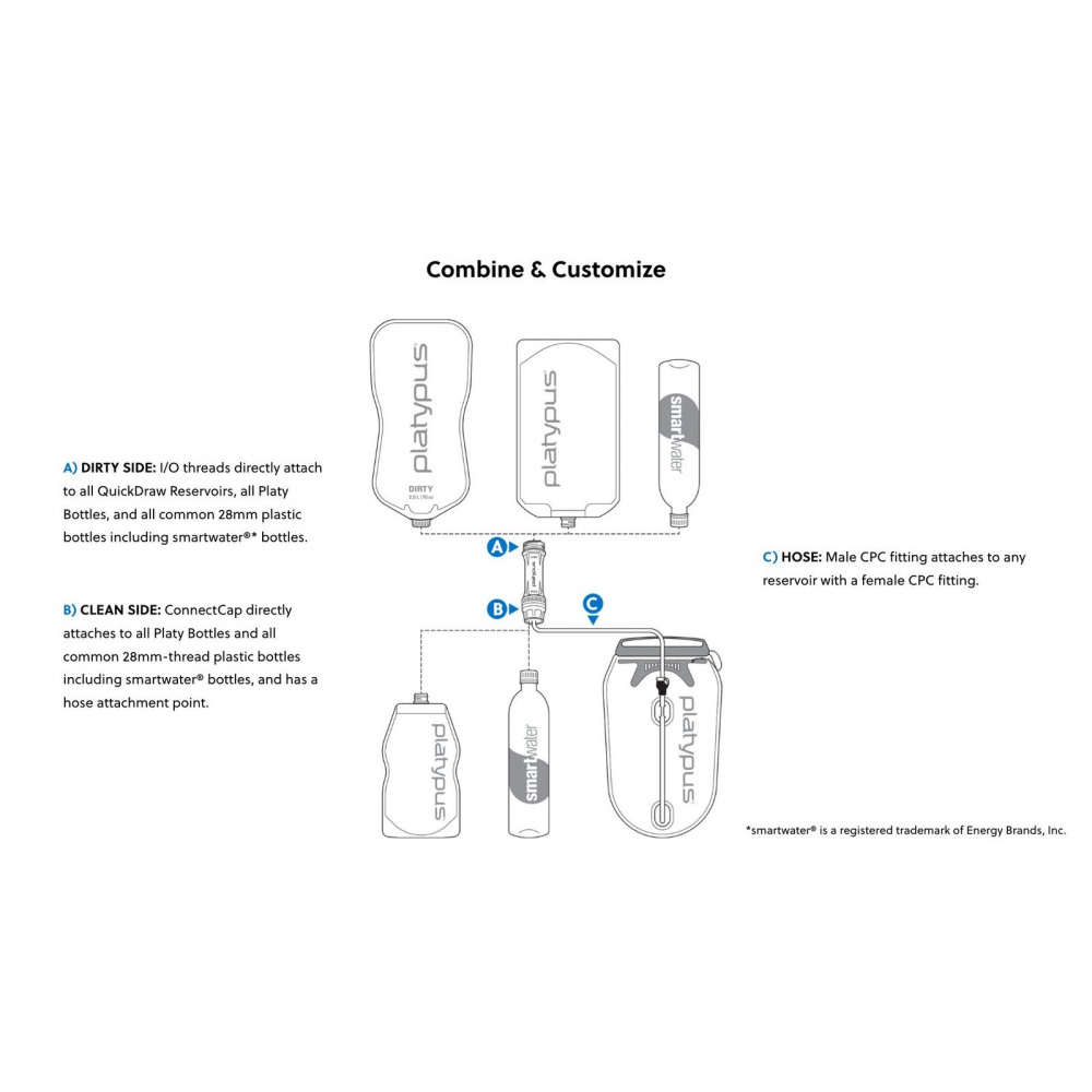 Enkelt att använda är det hur som; fyll "dirty"-flaskan med vatten från närmaste vattendrag - skruva på din Quickdraw - tryck genom det smutsiga vattnet till en ren behållare alternativt genom slangen till en vattenblåsa. Det går både smidigt och relativt snabbt med 3 liter/minut. Själva munstycket, på rena sidan, och adaptern (ConnectCap) passar till samtliga Platypus-flaskor, Smartwater-flaskor (om du snott med dig någon hem från USA) eller de flesta PET-flaskor (28 mm).